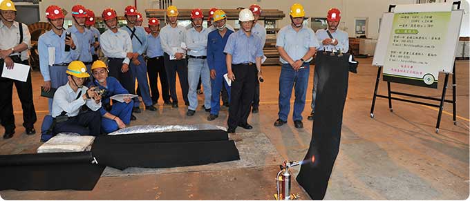 使用特殊耐熱纖維為原料,應用NON-WOVEN生產技術將原料結合成毯,可供高溫電銲防火毯、防火毯(滅火毯)、耐燃包覆材、耐熱墊材、耐高溫防火材料等用途。以及綠色環保建築建材料產品、防火捲門、建築防火、防火材料、防火建材、防火填塞、防火間隔等安全防護用途。